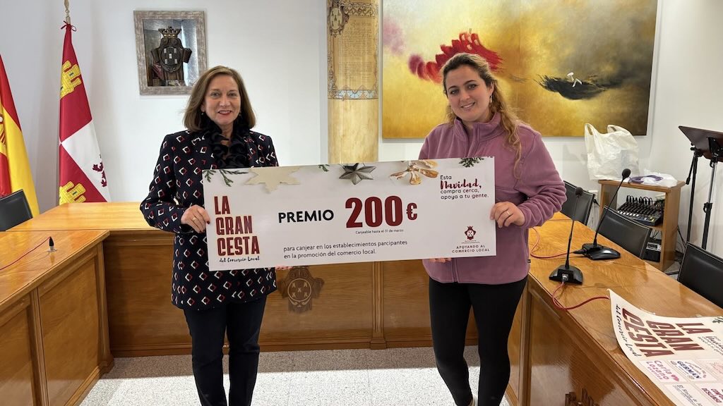 La alcaldesa de Peñaranda de Bracamonte, Carmen Ávila de Manueles, acompañada por la concejala de Comercio, Patro Macías, ha entregado los premios de la Gran cesta del comercio local, en una iniciativa del Ayuntamiento de Peñaranda y en la que han participado 40 establecimientos comerciales de la localidad.