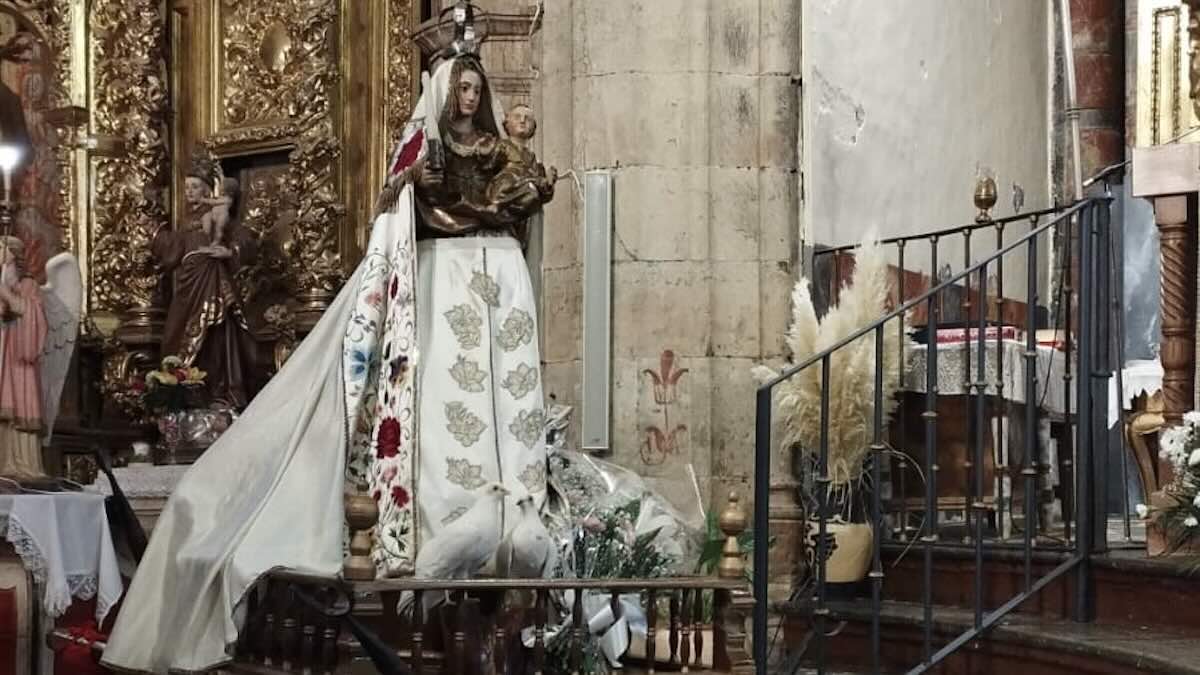Los vecinos de Palaciosrubios han celebrado hoy a la Virgen de las Candelas con una procesión por el interior del templo parroquial de San Andrés, debido a las inclemencias meteorológicas.