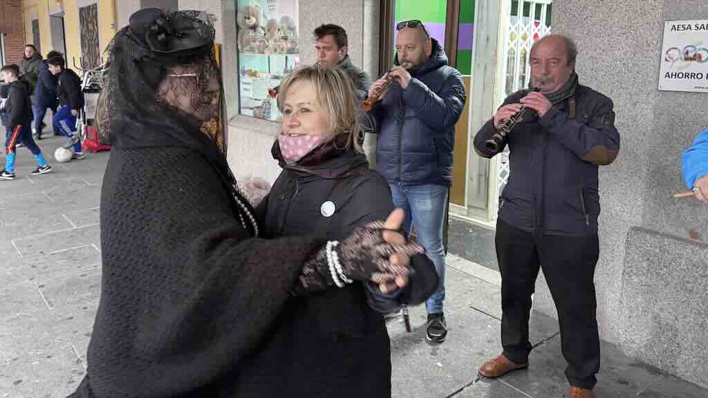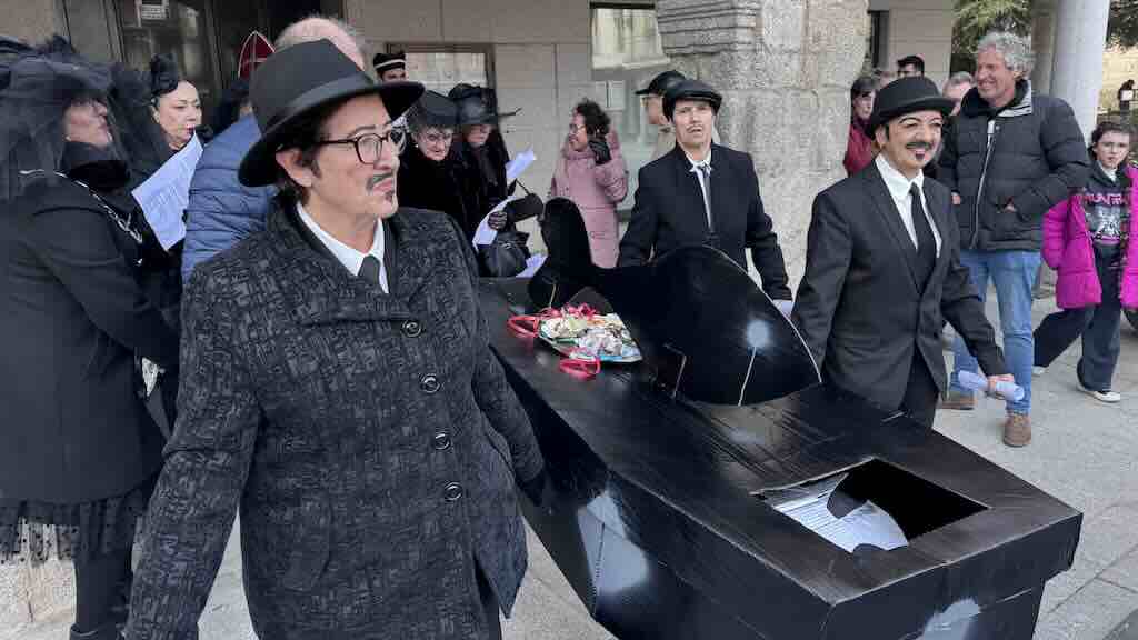 Las plañideras han acompañado a la sardina simbólica, mientras dos personajes disfrazados de obispo y cura han puesto voz a las tradicionales letanías, arrancando más de una sonrisa entre los asistentes.