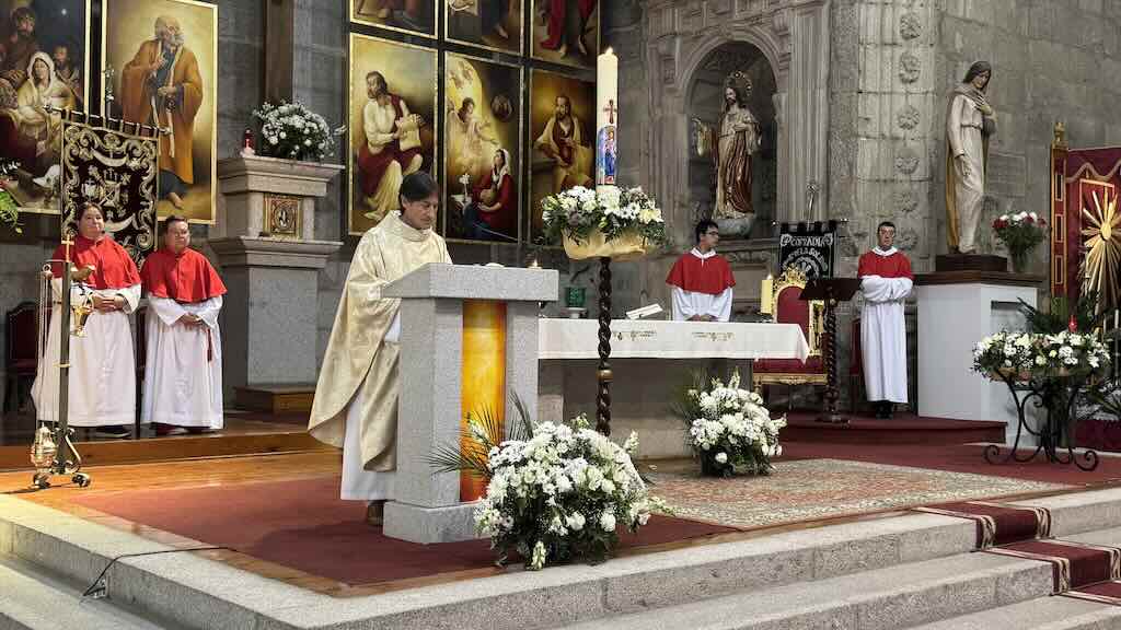La Misa del Domingo de Resurrección tras la procesión del Resucitado ha puesto el broche de oro a las procesiones de la Semana Santa de Peñaranda de Bracamonte. La eucaristía que ha sido presidida por el párroco de Peñaranda, Lauren Sevillano, ha comenzado una vez terminada la procesión con las imágenes del Resucitado y la Virgen de la Soledad en el interior del templo parroquial.