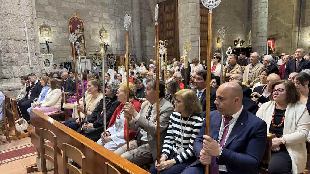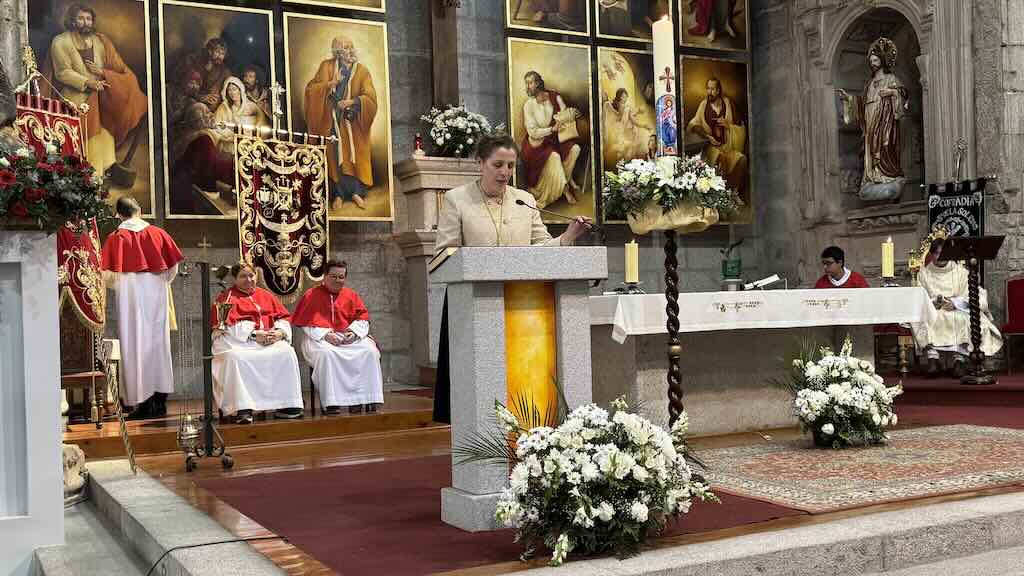 Tras la eucaristía, la presidenta de la Hermandad de Cofradías de Peñaranda, Isabel Sacristán ha tenido unas palabras de agradecimiento a quienes han hecho posible esta agrupación durante los últimos años. En especial, ha agradecido a quien fue su antecesor durante 30 años, Moisés Pérez Sánchez, a quien entregó un obsequio.