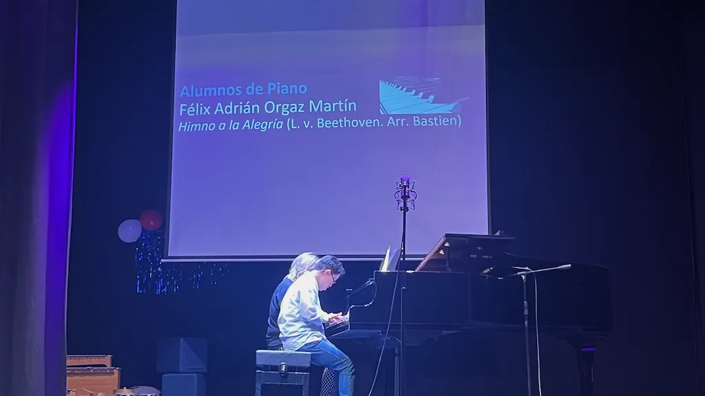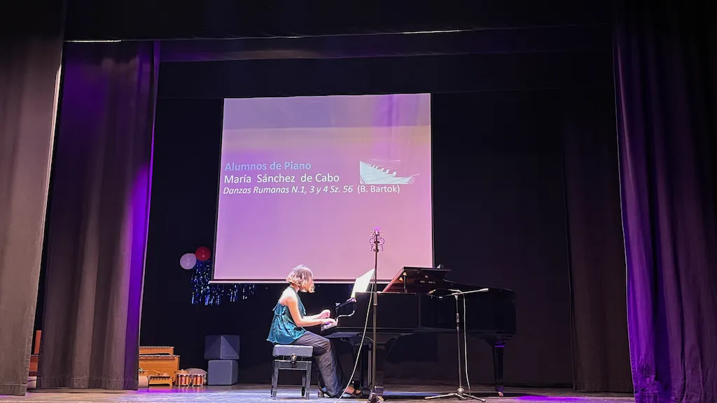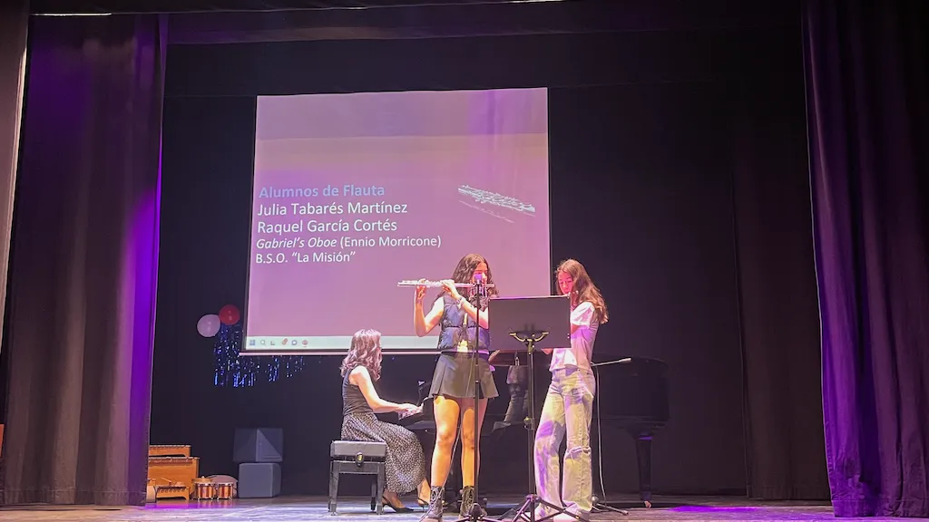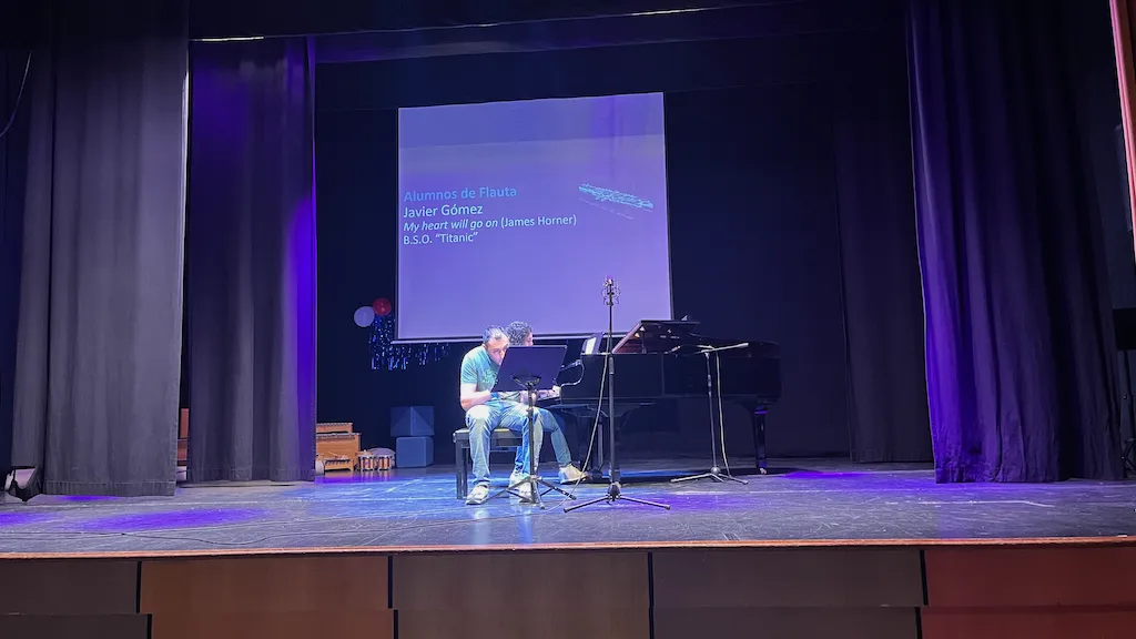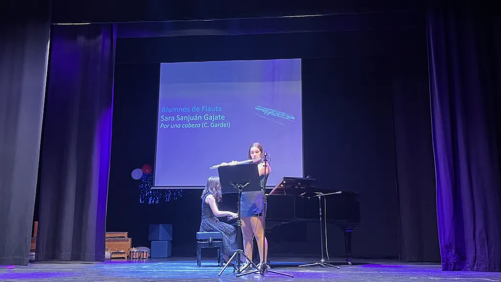 La tarde musical en Peñaranda concluyó con la actuación de los alumnos flauta travesera y piano. Los asistentes disfrutaron con obras clásicas y también contemporáneas como la Marcha Turca de Mozart, Por una Cabeza de Carlos Gardel, River flows in you de Yiruma o Nuvole Bianche de Ludovico Einaudi.