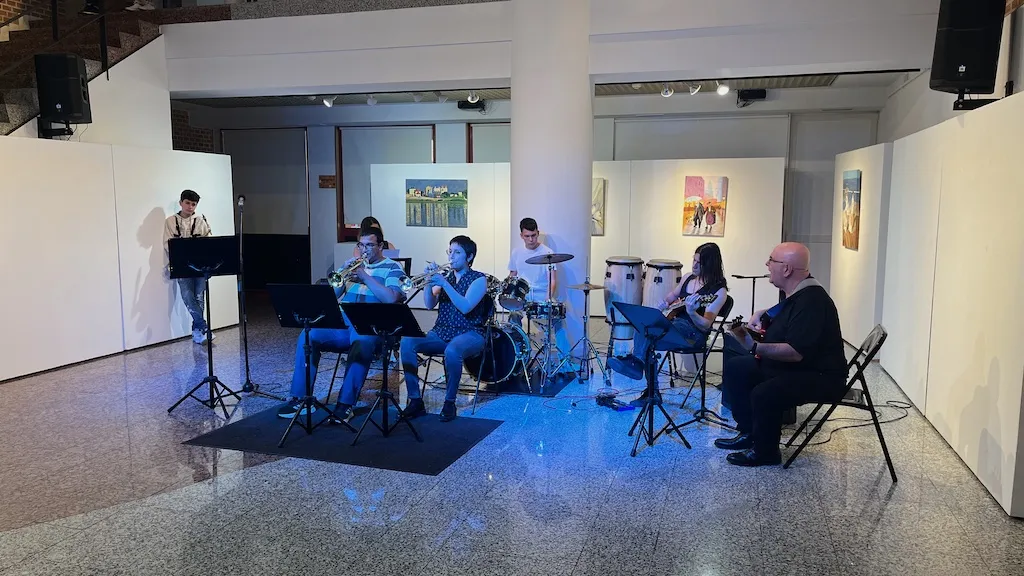 Las actuaciones se trasladaron a continuación hasta el zaguán. Allí ya estaba preparado el Combo de Música moderna para ofrecer a los espectadores varias piezas musicales de diferentes géneros.