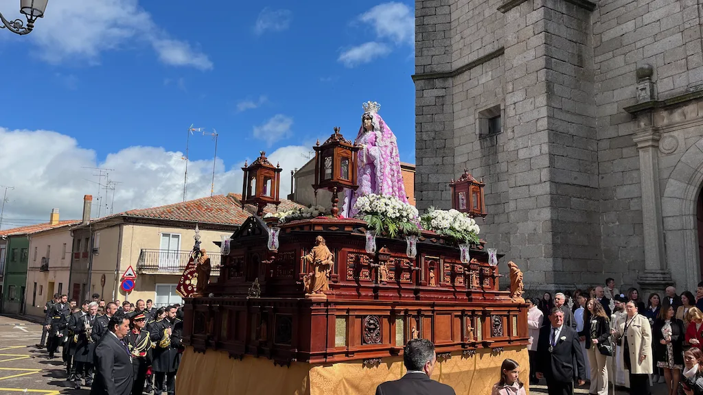Decenas de personas se dieron cita a las puertas de la iglesia de San Miguel para ver la salida y acompañar a la procesión de la Virgen de la Misericordia por las calles y plazas de la localidad. La imagen fue portada a hombros por los hermanos de carga de la cofradía peñaradina de Nuestro Padre Jesús Nazareno, Jesús de Medinaceli y la Virgen de la Misericordia. La banda de Cornetas y Tambores de la Hermandad de Peñaranda puso la música durante todo el recorrido.