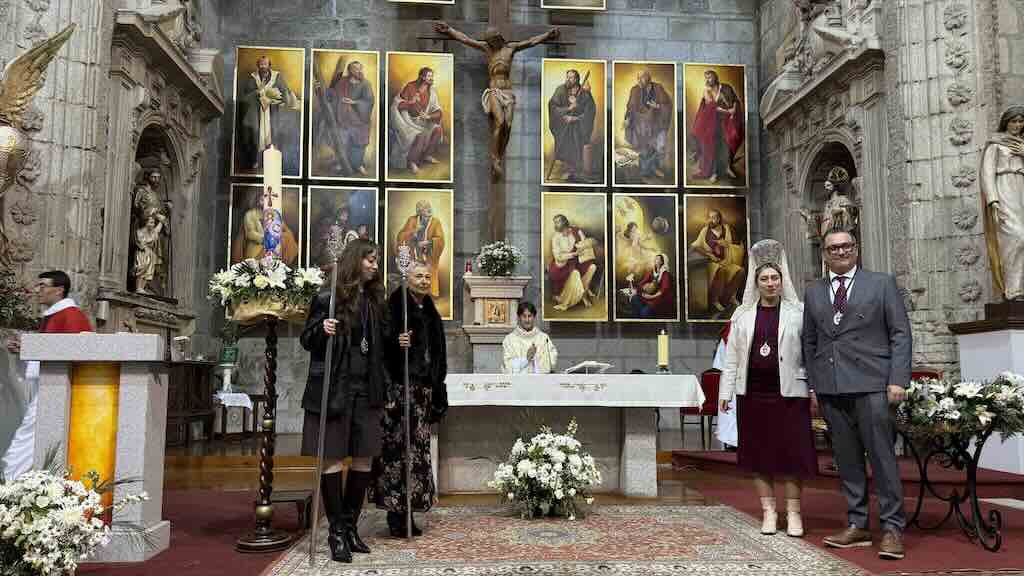 Decenas fieles se han congregado en la iglesia parroquial para asistir a la solemne eucaristía, presidida por el párroco, Lauren Sevillano. Tras la misa ha tenido lugar el cambio de varas de la mayordomía.