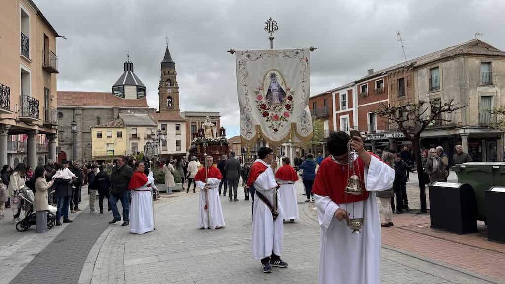 Después, fue la procesión por las calles y plazas de Peñaranda. La imagen de la Virgen de la Misericordia fue portada por los cofrades y acompañada por el párroco, representantes de la Hermandad de cofradías, así como fieles y miembros de la cofradía. La Escuela de dulzaina y percusión tradicional de Macotera ha acompañado a la procesión.