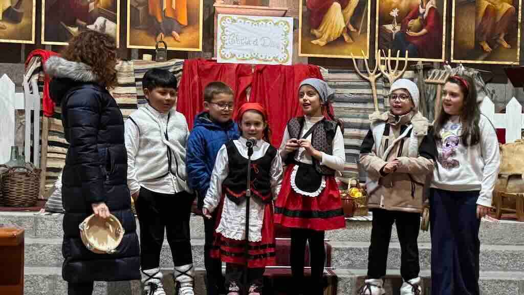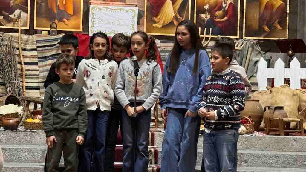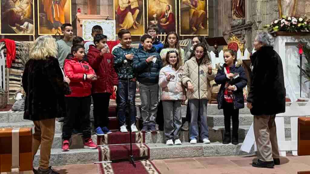 ‘¡Ay del chiquitiritín!’, ‘Mi burrito sabanero’, ‘A las 12 de la noche’, ‘Campanas sobre campanas’, ‘Melchor Grapar y el bueno de Baltasar’, ‘Ya vienen los Reyes Magos’, ‘Trámala, 25 de diciembre’, ‘Ya viene mi Dios’, ‘Los peces en el río’ y ‘Pastores venid’ fueron los villancicos que entonaron los niños de catequesis.