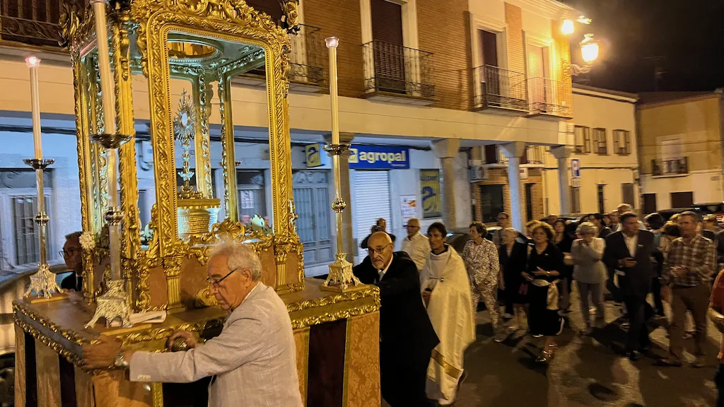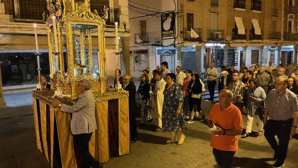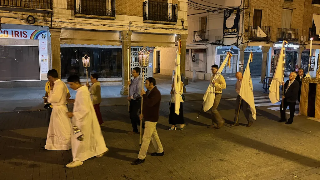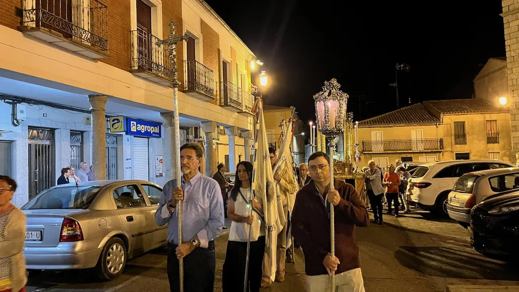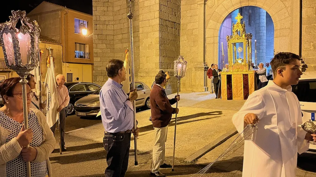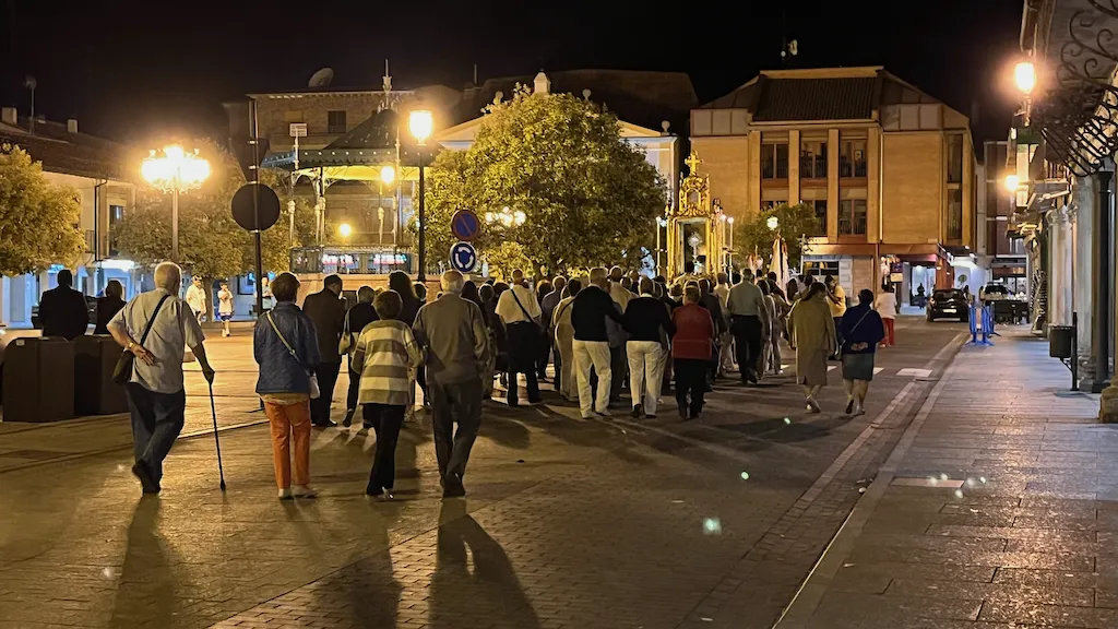 Los asistentes se desplazaron en procesión con la custodia hasta un altar colocado en la puerta del instituto Germán Sánchez Ruipérez donde realizaron una oración y procedieron a la bendición de campos. Para terminar regresaron a la parroquia. Allí rezaron completas y después degustaron un pequeño ágape.