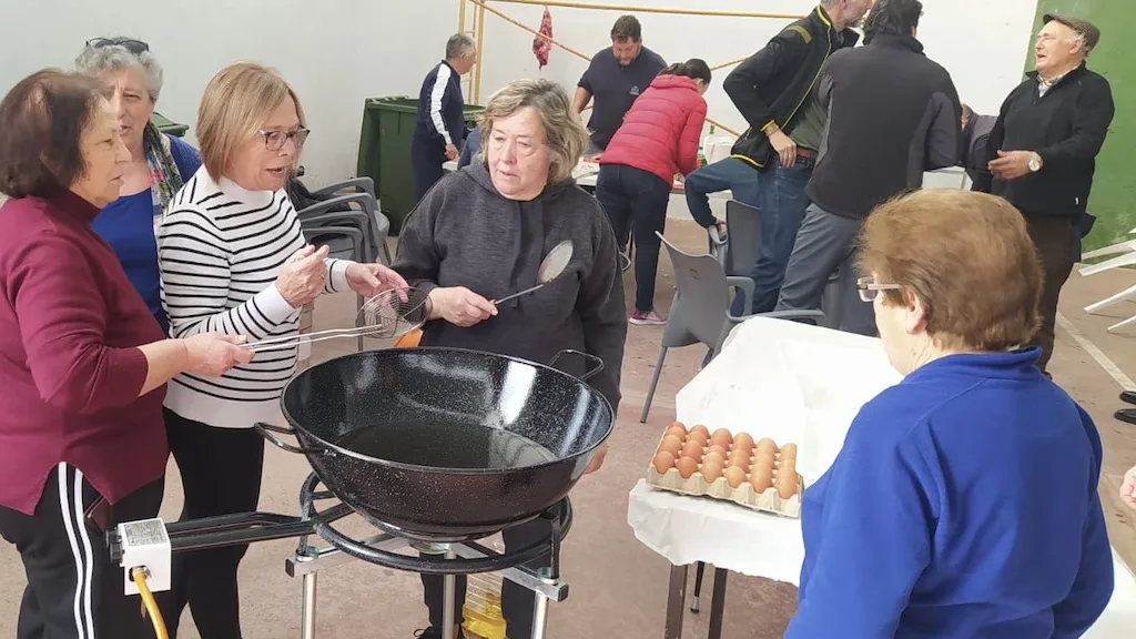 Los actos arrancaron a las diez de la mañana con el chamuscado del cerdo y el reparto de perrunillas, galletas y aguardiente amenizado con la música de Carlos Rufino. A media mañana se iniciaron los trabajos de despiece del animal con la explicación a cargo del matancero y después los asistentes hicieron un descanso para degustar hígado encebollado con huevos fritos.