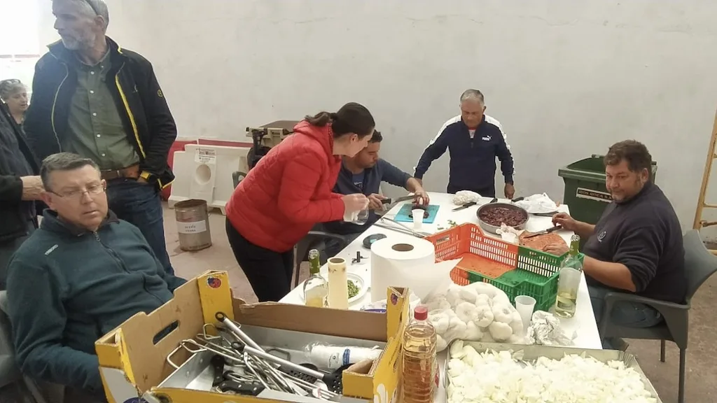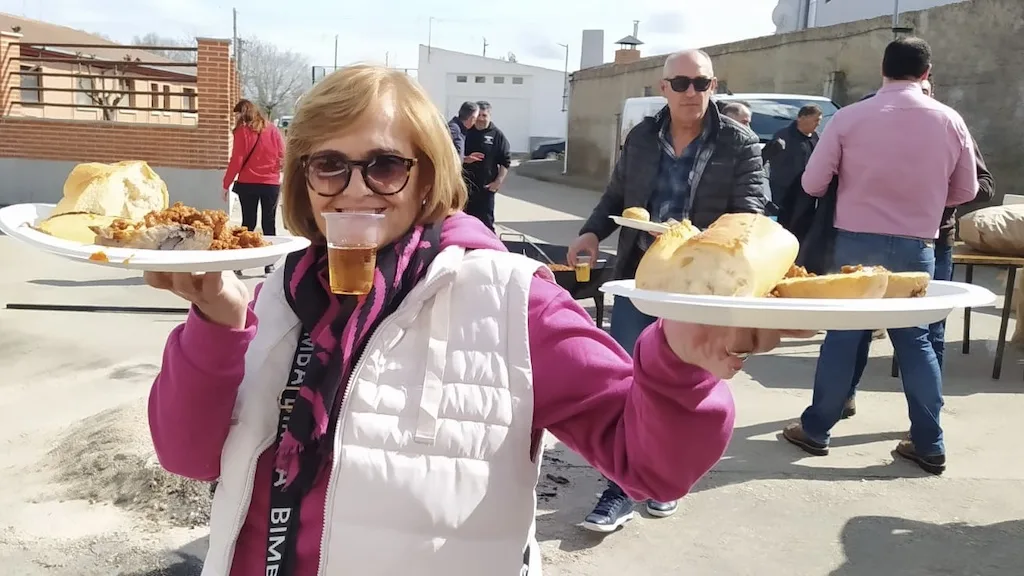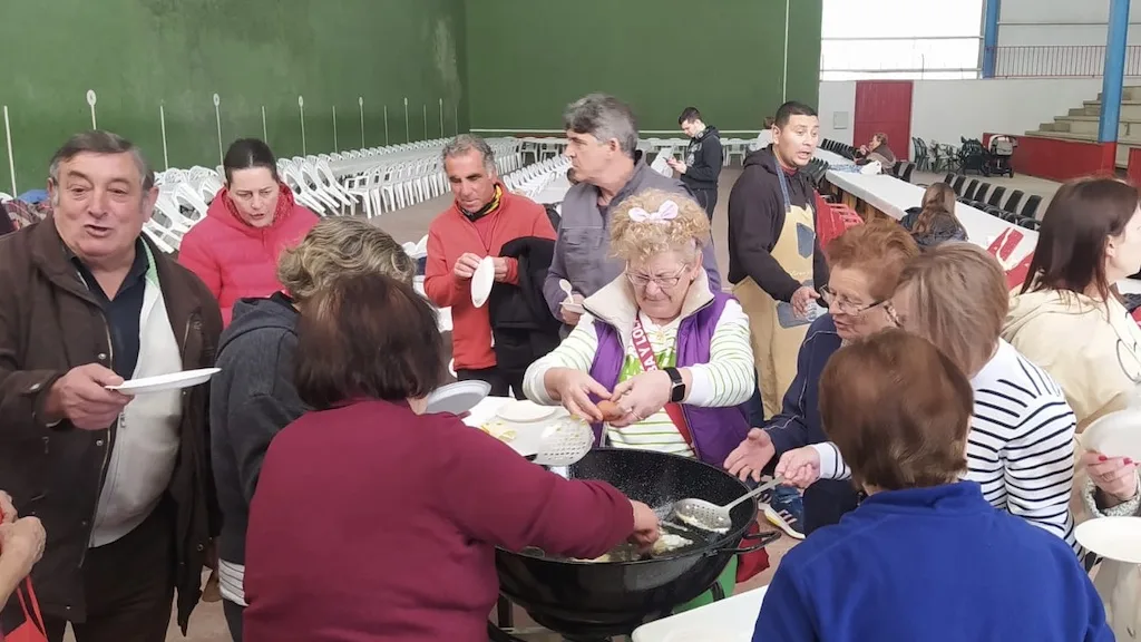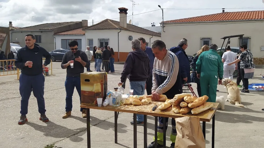 Esta fiesta de la mantaza en Tordillos finalizó con una gran comida de hermandad con patatas asadas, chichas y postre en el frontón que reunió a unas 400 personas y el sorteo del despiece del cerdo.